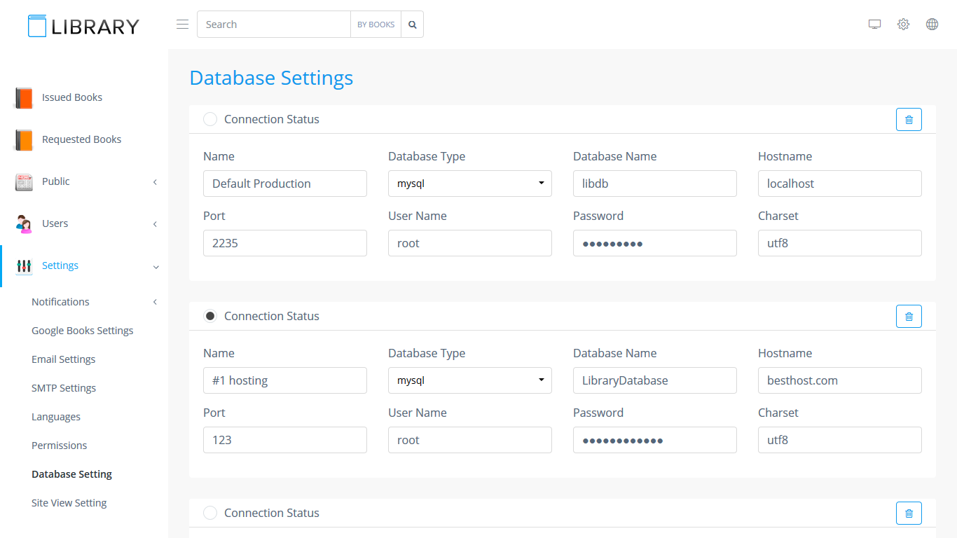 Here you can setup new or change existing database connection. Usually you can have just one connection, but sometimes it is required to change SQL server or use another SQL server user on the same database. In this case you can have some different database connections and simply switch between them.