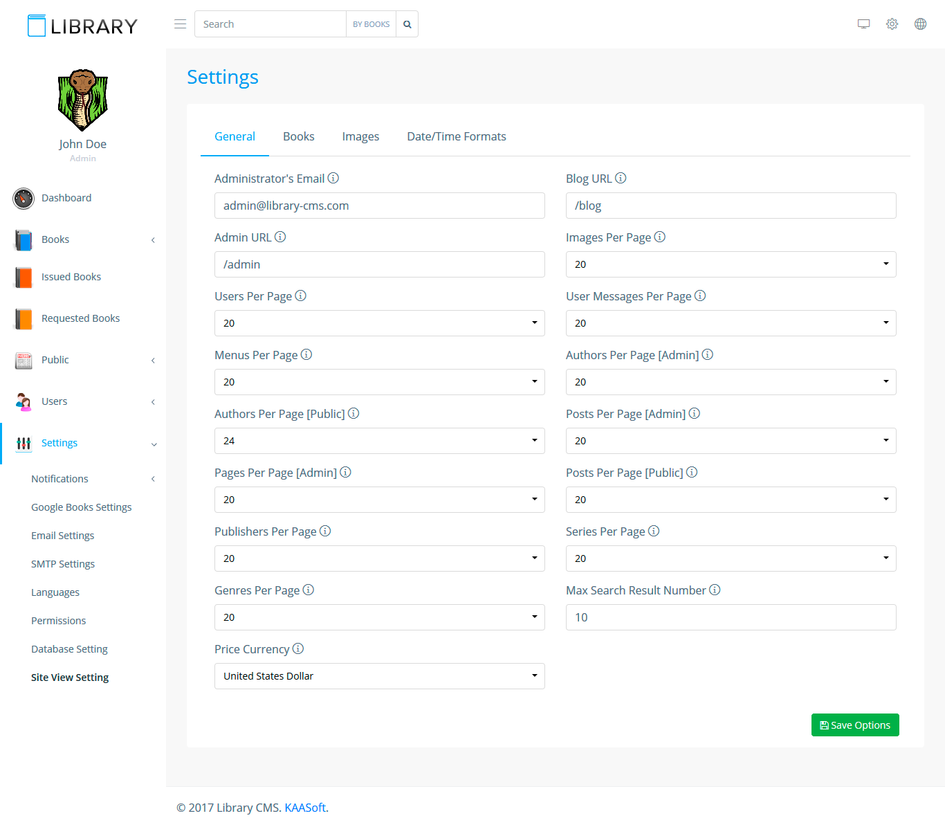 - Genaral – some general settings like path to admin portal or blog, default currency, max number of search results and per page options for different pages.